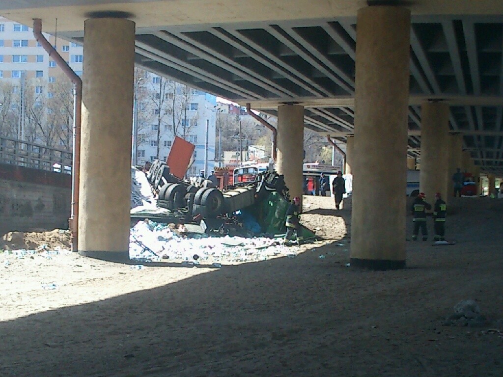 - Na chwilę obecną mogę potwierdzić, że jedna osoba poniosła śmierć. Był to najprawdopodobniej pasażer trolejbusa. Jak twierdzą naoczni świadkowie samochód mógł mieć problemy z hamulcami. My informacje te będziemy sprawdzać. Na miejsce skierowano już specjalne wozy Straży Pożarnej z podnośnikami i dźwigami. Ciężarówka leży do góry nogami. Utrudnienia w tym miejscu mogą potrwać jeszcze kilka godzin, czyli tyle ile będziemy usuwać skutki wypadku - powiedział kom. Michał Rusak, Rzecznik Prasowy Komendanta Miejskiego Policji w Gdyni.