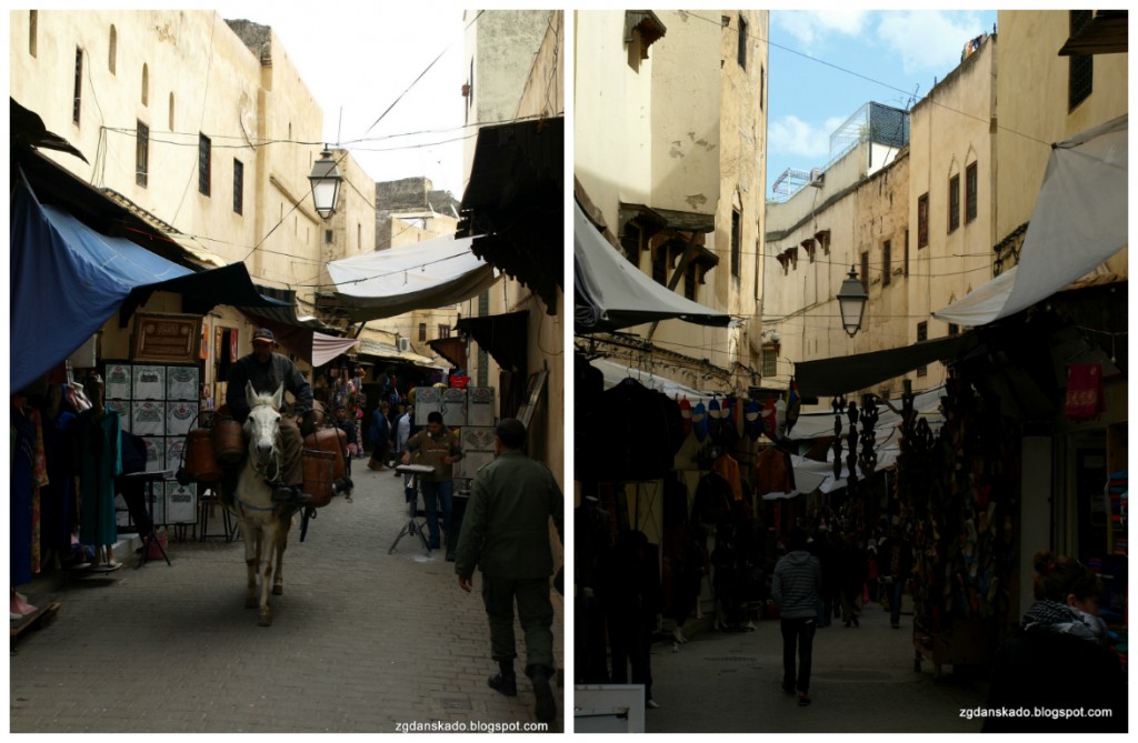 Było już dosyć późno, a medyna żyła. Gwar, śmiechy, kolory, byliśmy zmęczeni a mimo wszystko chcieliśmy w tym życiu uczestniczyć. Smakować Fezu - pierwszej stolicy Maroka. Miasta, które może się pochwalić największą i najstarszą medyną na świecie. Następnego dnia wstaliśmy ok. 8:00. Zjedliśmy śniadanie. Chociaż powiem szczerze, że ciężko było zjeść to co nam zaserwowano, tym bardziej, że imbryk, talerzyk czy szklaneczka były tak brudne, że nie zachęcały. Zawinęliśmy się z Daru tak szybko jak tylko się dało. Naszą następną bazą noclegową był hotel Kewtar. Czystszy, aczkolwiek z ciepłą wodą bywało różnie, a czasem nawet nie bywało. Gdy tylko się zakwaterowaliśmy, od razu poszliśmy eksplorować miasto, z którym wiązaliśmy duże oczekiwania.