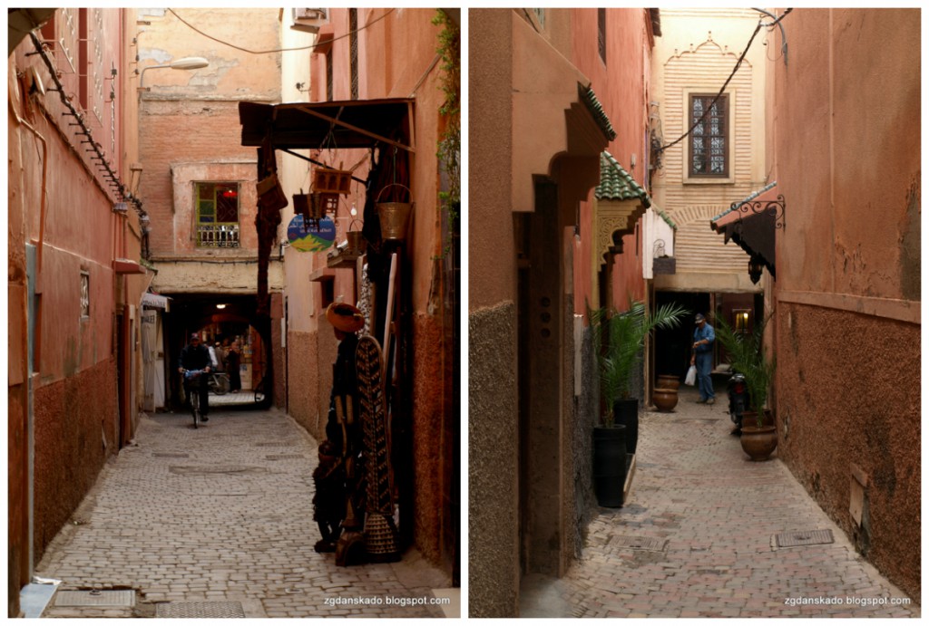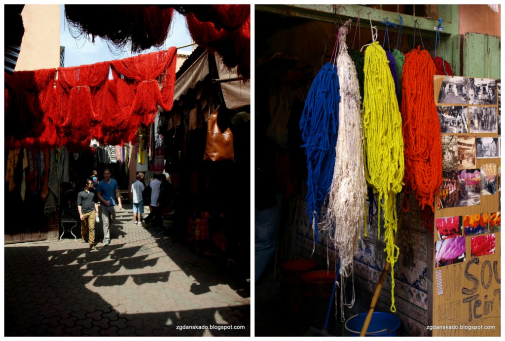 Plac Jemaa el-Fna jest największą atrakcją medyny, ale nie jedyną. Medyna w Marrakeszu jest młodsza od feskiej i zupełnie inna. Znajduje się tu wiele tradycyjnych rzemieślniczych suków - suk farbiarzy wełny, suk producentów obuwia skórzanego czy suk kowali, a to tylko niektóre z nich. W porównaniu z Fezem, w Marrakeszu można rzeczywiście zobaczyć jak się robi skórzane bambosze, farbuje wełnę czy produkuje np. metalowe lampy. Są tu również garbarnie skór, ale zdecydowanie mniej imponujące od feskich. Zrezygnowaliśmy z odwiedzenia ich.