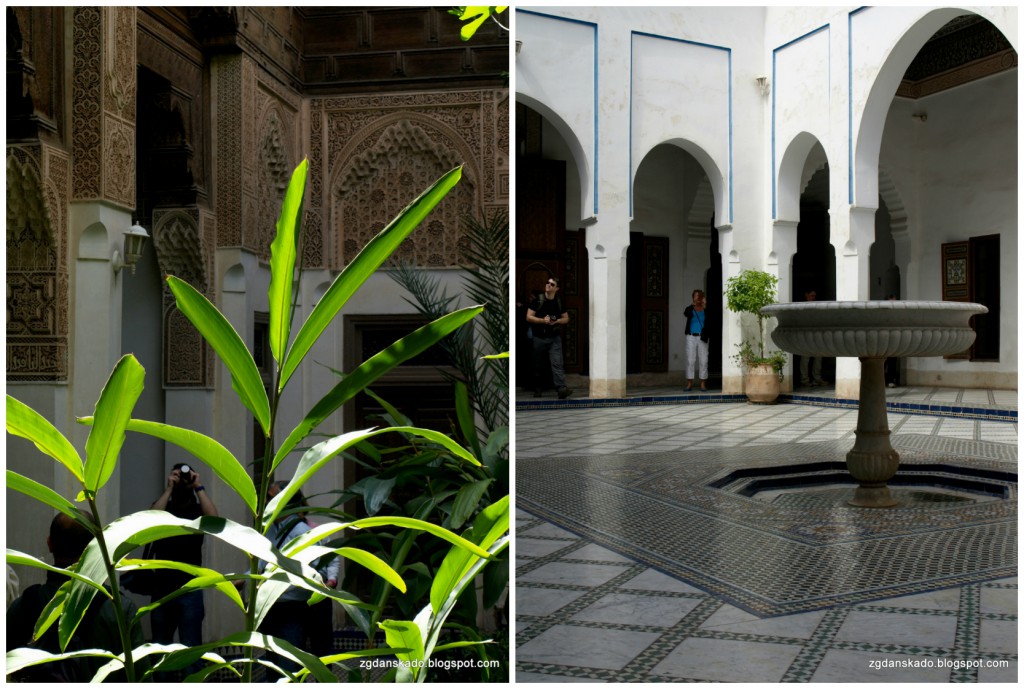 Drugiego dnia postanowiliśmy zobaczyć pałac El Bahia. Tym razem poszliśmy do niego od razu po śniadaniu. Znowu pięknie zdobione dziedzińce, apartamenty i zaciszne ogrody. Pałac należy obecnie do króla Mohammeda VI i jest zamknięty dla turystów podczas jego pobytów w Marrakeszu.