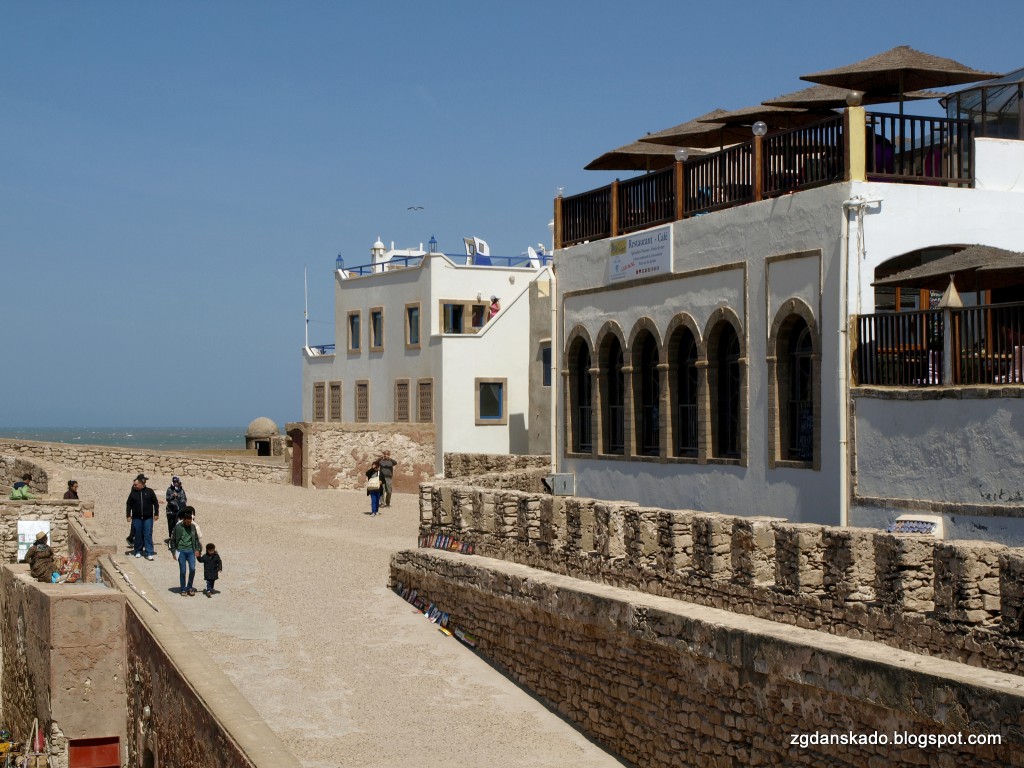 As-Sawira jest bardzo, bardzo turystycznym miejscem. Prawie każdy budynek, uliczka czy placyk są zadbane. Ze względu na idealne warunki do surfowania, amatorów tego sportu jest tu sporo. Niestety to niesie za sobą dosyć wysokie ceny np. w restauracjach. Naleśniki za które w Marrakeszu płaciliśmy 5dh, a w Rabacie 2 dh, w As-Sawirze kosztowały 15-20 dh. Coś za coś. Aż dziwne, że hotele są tu tak niedrogie. Jest to jedyne miejsce w Maroku, gdzie nocleg warto zarezerwować wcześniej, bo w kilku fajnych miejscach nie było wolnych pokoi, a jeszcze 2 dni prędzej na booking.com były dostępne i to w dobrych cenach.