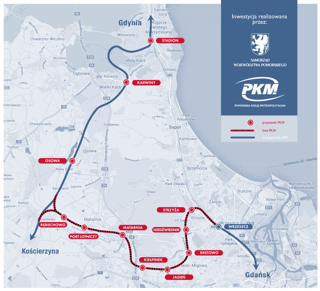 Budowa PKM rozpoczęła się w maju 2013 roku i po niemal dwóch latach dobiegła końca. Wykonana została dwutorowa linia PKM wraz z ośmioma przystankami: Gdańsk Strzyża, Gdańsk Brętowo, Gdańsk Jasień, Gdańsk Kiełpinek, Gdańsk Matarnia, Gdańsk Port Lotniczy i Gdańsk Rębiechowo.