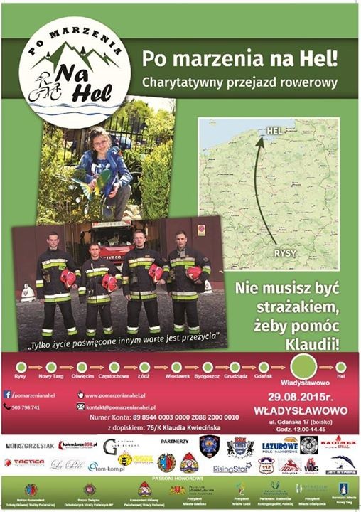W miniony piątek (21 sierpnia) strażacy wspięli się na Rysy, w sobotę wskoczyli na rowery, a we wtorek wyjechali z Łodzi. W sobotę 29 sierpnia przybędą do Helu. W sumie pokonają blisko 900 kilometrów. Po drodze zbierają pieniądze do puszek, a także promują swoją akcję. Aby pomóc Klaudii potrzebne jest 500 tysięcy złotych.