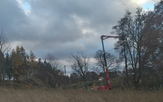 Usuwanie drzewa na trasie Barłomino - Luzino:
