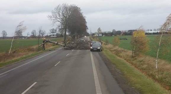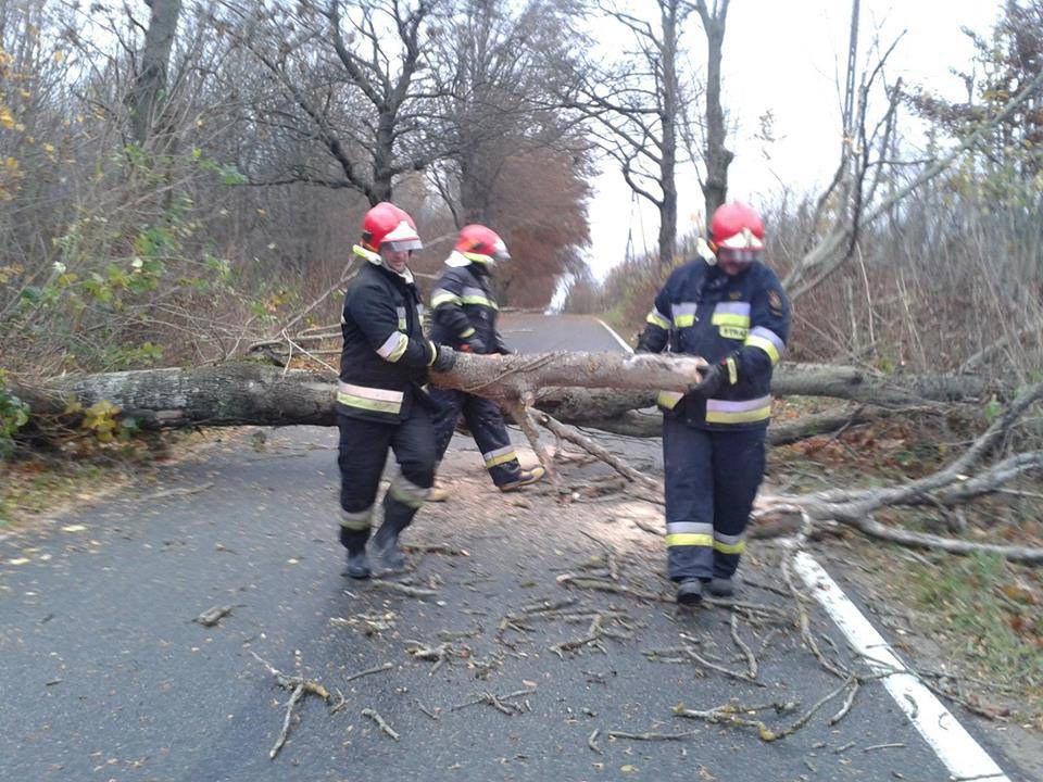 Strażacy z powiatu wejherowskiego pracują obecnie w kilku miejscach, między innymi usuwają powalone drzewo na trasie Bychowo - Wierzchucino w gminie Gniewino.
