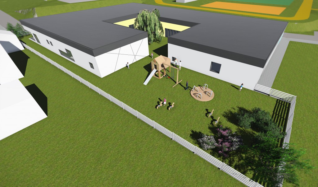 Osobną cześć ma stanowić pion kuchenny składający się z nowoczesnej kuchni, która zapewni pełne wyżywienie dla różnych grup wiekowych uczęszczających do żłobka. W obiekcie znajdować się będzie również wspólna sala wielofunkcyjna, wewnętrzny dziedziniec oraz ogród z placem zabaw.