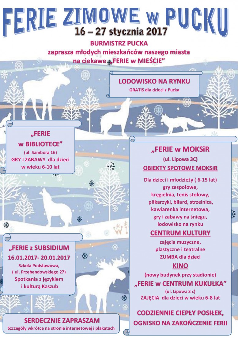 W województwie pomorskim ferie zimowe trwają od 16 do 29 stycznia 2017 r. W przygotowanej przez instytucje z naszego regionu ofercie nie zabraknie warsztatów, spotkań artystycznych, muzycznych czy sportowych. Na zajęcia zapraszają pomorskie muzea, galerie, domy kultury, biblioteki oraz ośrodki sportu i rekreacji. Sprawdź, jakie atrakcje czekają na dzieci.