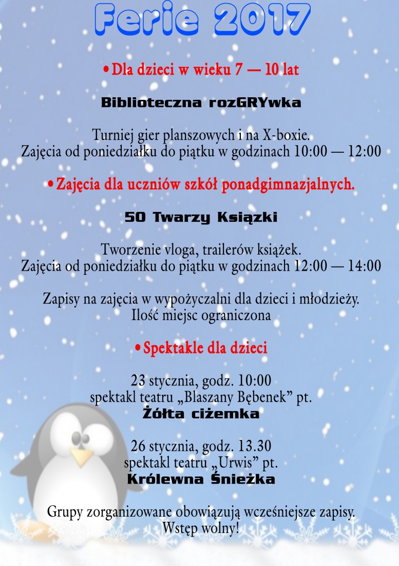Ferie zimowe – dla dzieci i młodzieży szkolnej to czas odpoczynku, lenistwa i nabrania sił do nauki w kolejnym semestrze. Dla rodziców – czas poszukiwania, jak interesująco i aktywnie zaplanować wolne dni swoim pociechom.