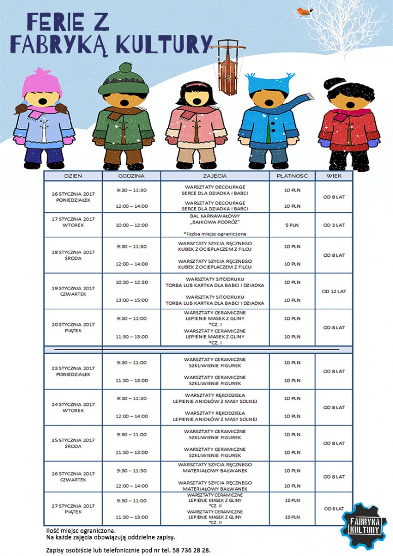 Jak co roku ferie warto spędzić w Gdyni. Gdyńskie instytucje kultury, ośrodki edukacyjne i sportowe przygotowały dla dzieci i młodzieży szeroki wachlarz aktywności. Wśród nich znajdą się warsztaty plastyczne, teatralne, czytelnicze i kulturoznawcze, gralnie, a dla tych aktywnych zajęcia ruchowe. Wiele aktywności jest nieodpłatnych. Na część zajęć warto zapisać się wcześniej.
