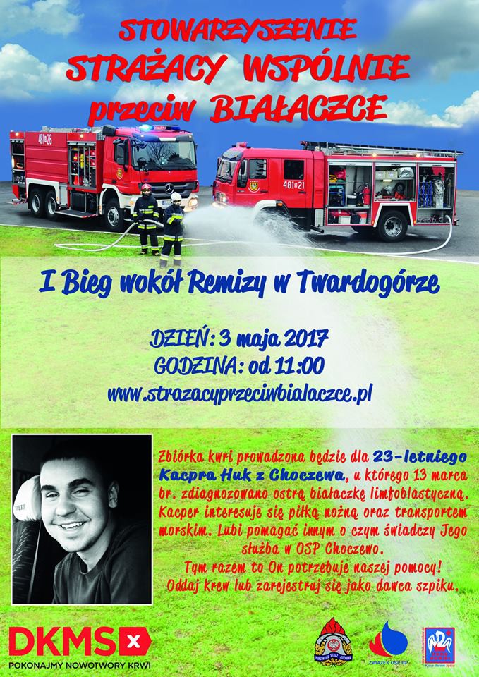 Strażacy z okolic Wrocławia organizują I bieg wokół remizy w Twardogórze. Będzie to akcja poświęcona Kacprowi z Choczewa.
