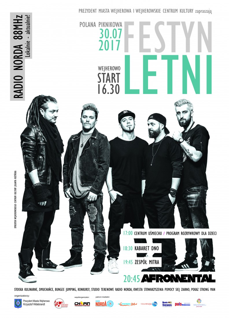 O godzinie 18:30 wystąpi Kabaret Dno, natomiast o 20:45 – grupa Afromental w składzie: Tomasz Lach (wokal), Bartosz Śniadecki (instrumenty klawiszowe), Tomasz Torres (perkusja), Wojciech Witczak (gitara basowa) i Aleksander Milwiw-Baron (gitary). Gwiazda tegorocznego Festynu Letniego wystąpi z materiałem koncertowym promującym ostatni album „Mental House”.