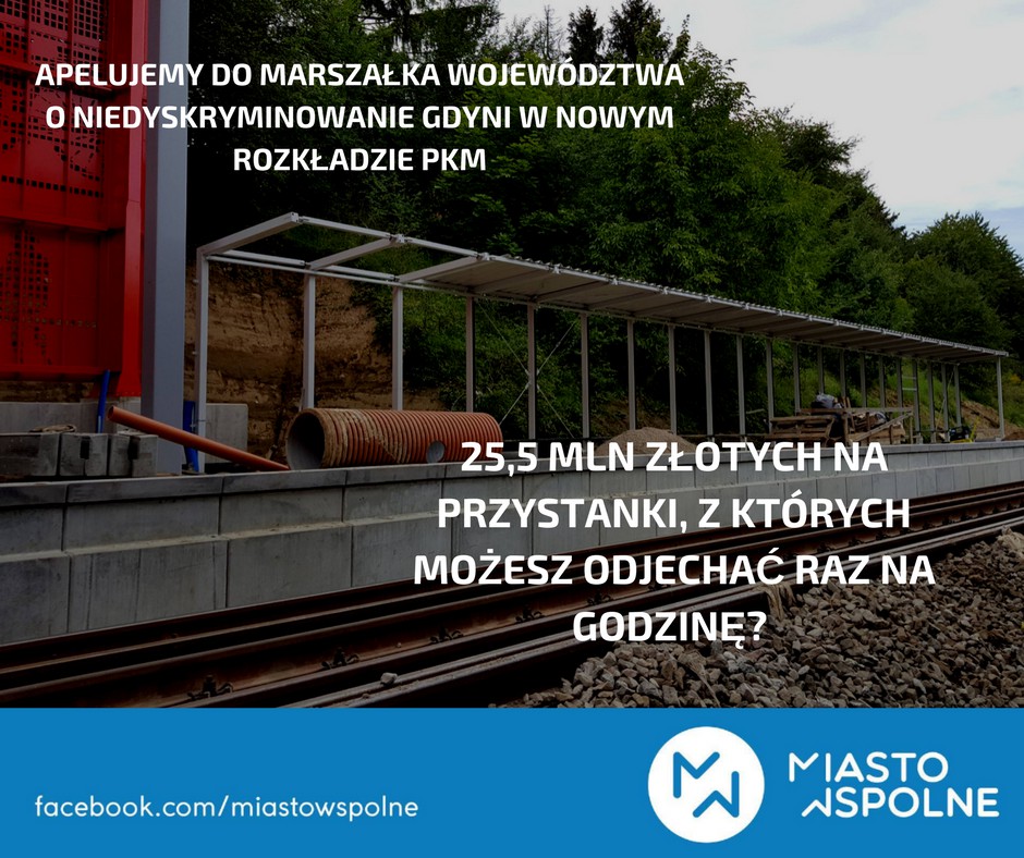 Stowarzyszenie Miasto Wspólne wystosowało apel do Mieczysława Struka, marszałka województwa pomorskiego, o więcej kursów pociągów PKM w Gdyni. Społecznicy namawiają też gdyńskich polityków do aktywnych działań, zanim proponowany rozkład jazdy wejdzie w życie.