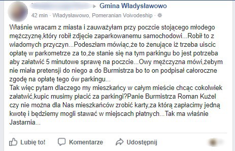 Burmistrz Władysławowa Roman Kużel odpowiedział na ten post i stanowczo zaznaczył, że z pobieraniem opłat przy parkingu koło poczty ratusz nie ma nic wspólnego. Teren jest własnością PKP, a nie gminy.