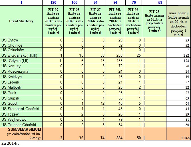 Pełne zestawienie województwa Pomorskiego w roku 2014: