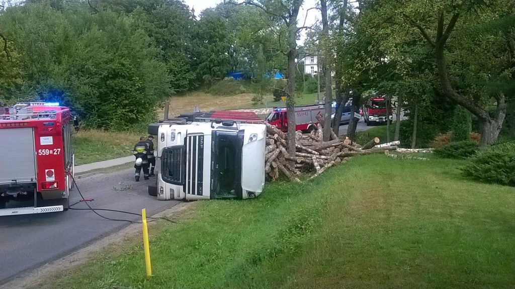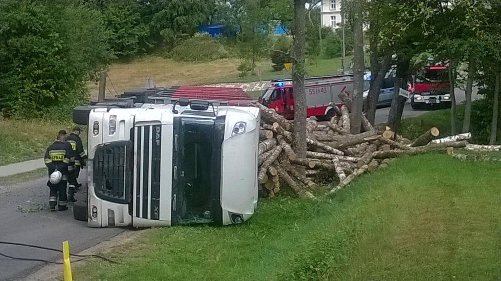 - Strażacy muszą postawić pojazd na koła, usunąć drewno i udrożnić ruch - dodaje kpt. Mirosław Kuraś.