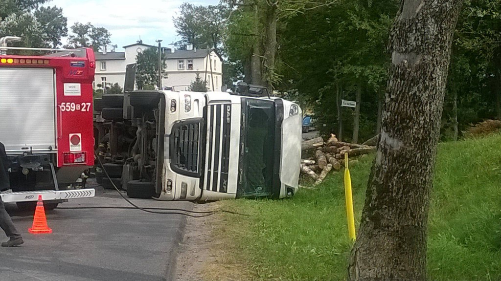 - Po przybyciu na miejsce zdarzenia, strażacy zastali przewrócony samochód ciężarowy wraz z naczepą przewożącą drewno z lasu. W zdarzeniu ucierpiał kierowca, którym zajął się zespół ratownictwa medycznego - informuje kpt. Mirosław Kuraś, oficer prasowy komendanta powiatowego PSP w Wejherowie.