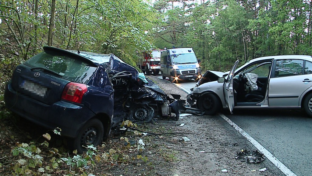 Na trasie Rosochy-Łebno doszło do czołowego zderzenia dwóch pojazdów. Policja wyjaśnia dokładne okoliczności wypadku.