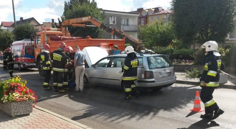 W Redzie na ulicy Łąkowej zderzyły się dwa auta - samochód ciężarowy i osobówka. Droga jest częściowo nieprzejezdna.