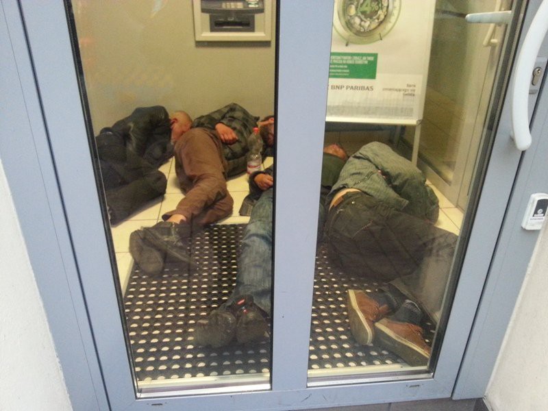- Czterech znanych strażnikom bezdomnych alkoholików, w tym trzech z Wejherowa i jeden z Łęczyc, urządzili sobie nocleg w pomieszczeniu, gdzie zamontowany jest bankomat. Do jego wnętrza dostali się legalnie, dni otworzyli kartą do bankomatu. Potencjalni klienci nie mieli możliwości skorzystania z urządzenia, dostęp do bankomatu był zablokowany leżącymi na podłodze mężczyznami. Tego typu „noclegownie” dla bezdomnych funkcjonować w mieście nie mogą - dodaje wejherowska straż miejska.