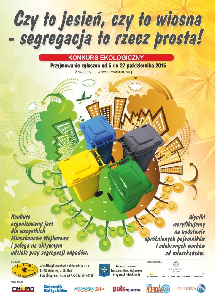 Zakład Usług Komunalnych chce zachęcić mieszkańców Wejherowa do segregacji odpadów poprzez konkurs „Czy to jesień, czy to wiosna, segregacja to rzecz prosta".