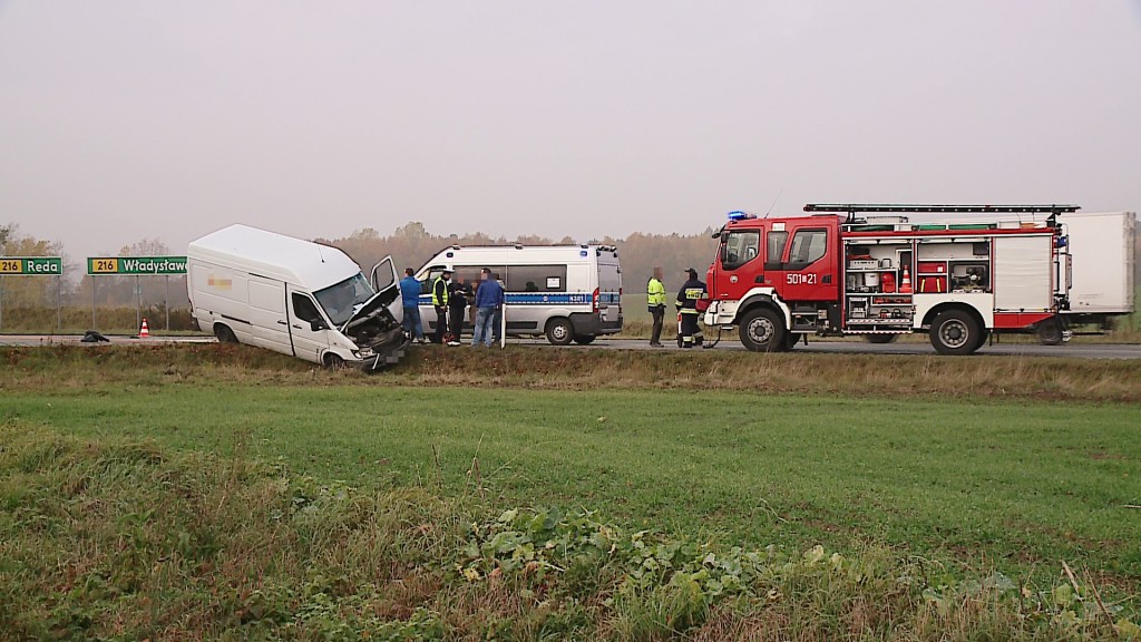- Jadąc w kierunku Władysławowa, wchodząc w zakręt zauważyłem samochód który zmierzał z Żelistrzewa, z drogi podporządkowanej. Wjechał mi prosto na czołówkę, odbiłem na lewy pas, żeby go nie zahaczyć. Stanąłem na poboczu, zauważyłem że kierowca auta dostawczego był nieprzytomny. Udrożniłem mu drogi oddechowe, kazałem zadzwonić po karetkę - relacjonuje Marcin, kierowca ciężarówki.