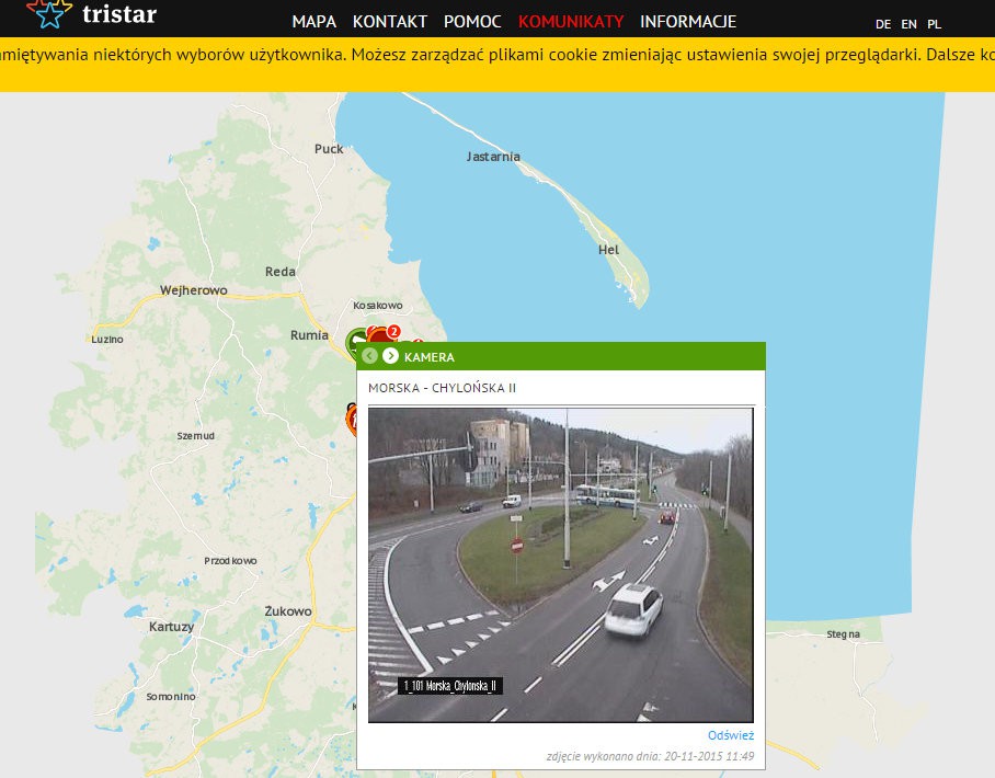 Ponadto możliwe jest zapoznanie się z podglądem na obecną sytuację na drodze za pośrednictwem zainstalowanych kamer nadzoru wizyjnego.