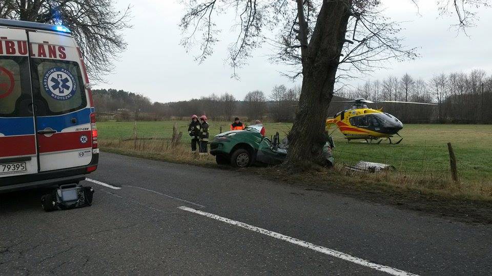 Wypadek drogowy w Rybnie (powiat wejherowski). Z naszych informacji wynika, że jedna osoba została ranna. Kobieta kierująca samochodem Daewoo Matiz uderzyła w drzewo. Na miejsce przyleciał śmigłowiec Lotniczego Pogotowia Ratunkowego.