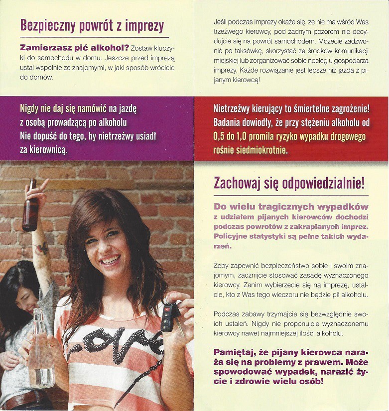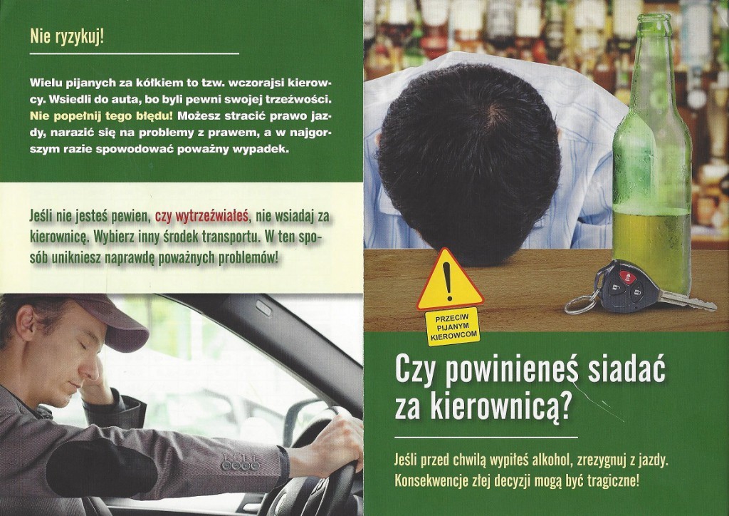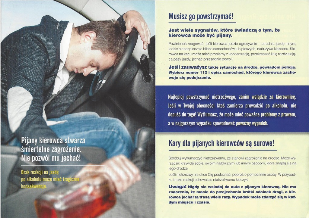 W związku z akcją w wybranych klubach, sklepach oraz ośrodkach wczasowych rozwieszone zostaną plakaty, a także rozdawane będą ulotki propagujące odpowiedzialne zachowania w sytuacjach z udziałem nietrzeźwych kierowców. Działania te mają na celu przekonanie obserwatorów takich wydarzeń o potrzebie i zasadności zareagowania. Natomiast na drogach rutynowe kontrole oraz prewencyjne działania będą prowadzić policjanci.