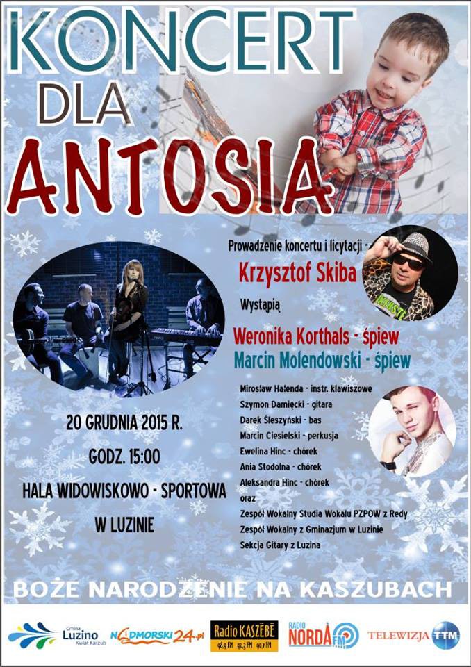 W tym celu rodzinę postanowiła wesprzeć gmina Luzino oraz lokalni artyści. W niedzielę (20 grudnia) w Hali Widowiskowo - Sportowej w Luzinie odbędzie się koncert charytatywny dla Antosia. Rozpoczęcie wydarzenia nastąpi o godzinie 15:00.