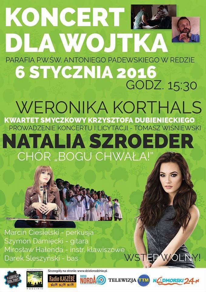 Zaśpiewają Weronika Korthals, Natalia Szroeder oraz Chór Bogu Chwała. Koncert upiększy oprawą muzyczną Kwartet smyczkowy Krzysztofa Dubienieckiego oraz zespół muzyczny. Wydarzenie poprowadzi dyrektor MDK Tomasz Wiśniewski. Dochód z koncertu i aukcji przeznaczony będzie na leczenie i rehabilitację Wojtka Wasilke, który od kilku lat jest sparaliżowany od pasa w dół.