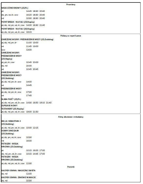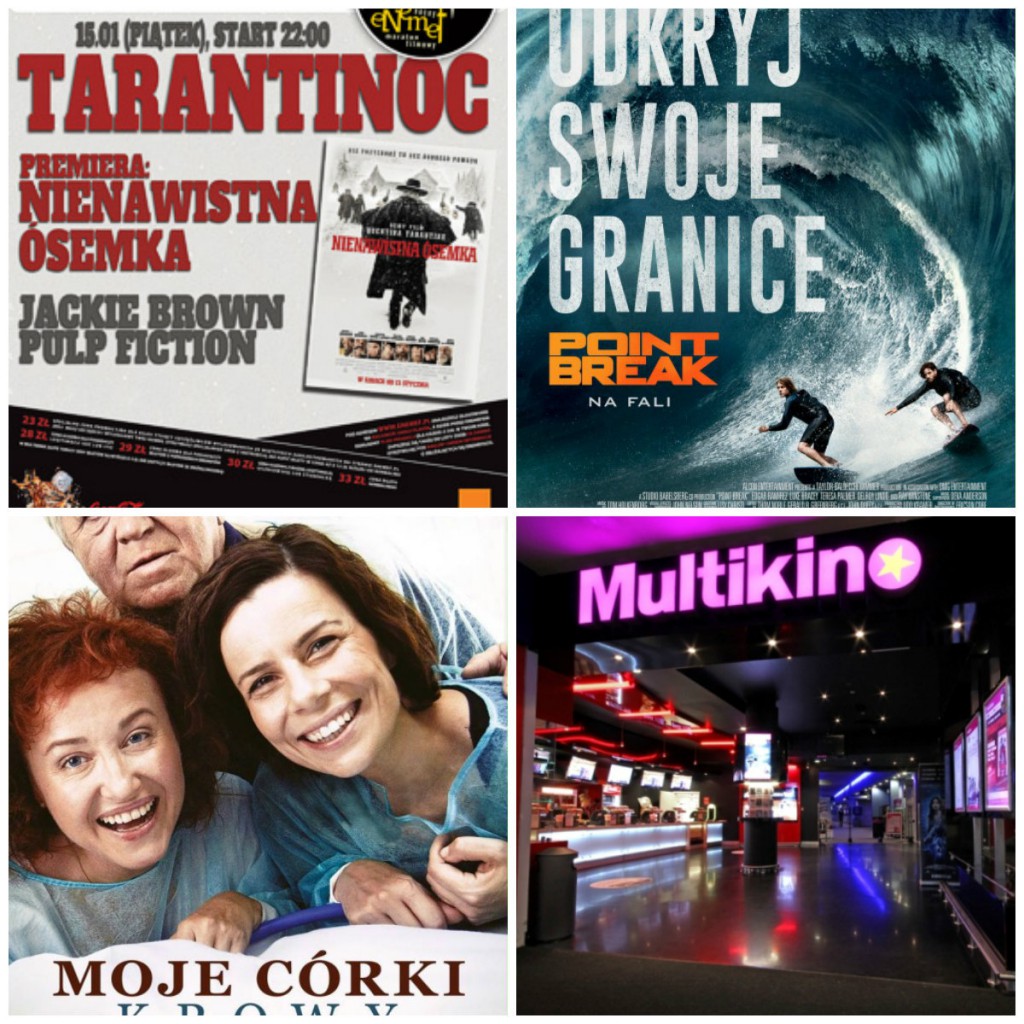 8 stycznia br. w kinach sieci Multikino będzie można zobaczyć premierowo: „Moje córki krowy” z Agatą Kuleszą i Gabrielą Muskałą w rolach głównych oraz film akcji „Point Break – na fali”. 15 stycznia odbędzie się TarantiNoc, czyli przegląd filmów jednego z najwybitniejszych i najbardziej kontrowersyjnych reżyserów naszych czasów.