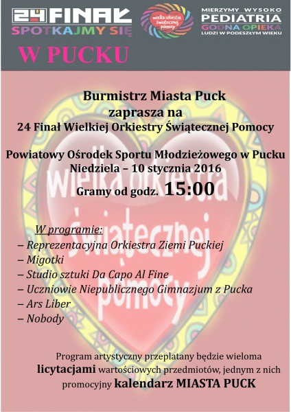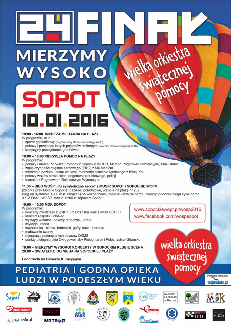Już 10 stycznia 2016 Sopockie WOPR wraz z Urzędem Miasta Sopotu pod Patronatem Prezydenta Jacka Karnowskiego zorganizuje 24. Finał Wielkiej Orkiestry Świątecznej Pomocy.