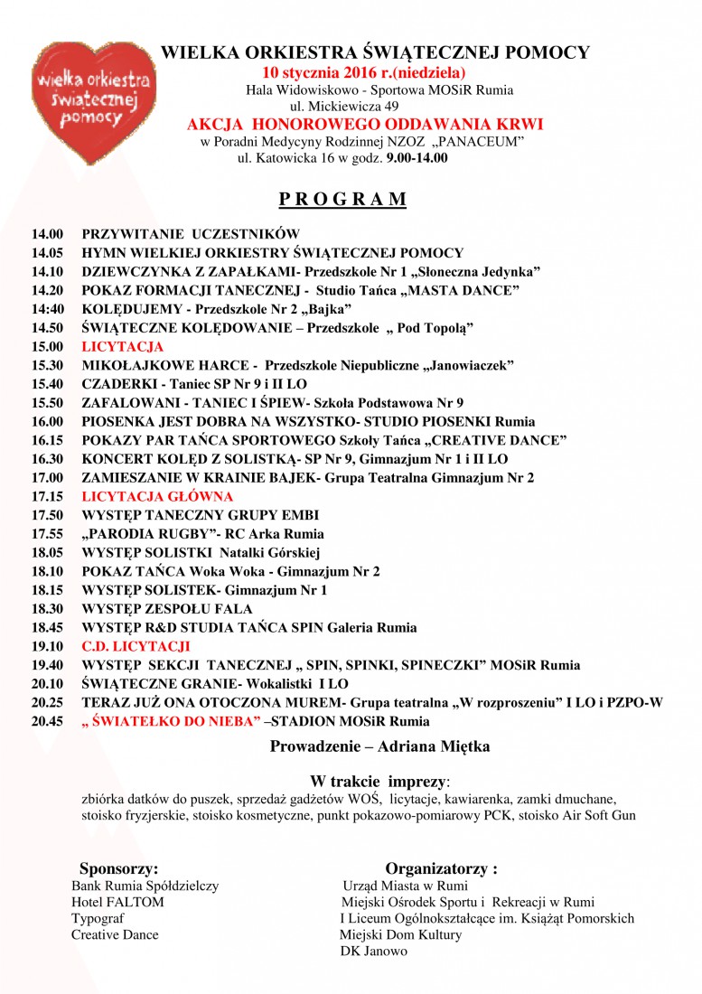 W najbliższą niedzielę 10 stycznia w całej Polsce odbędzie się 24. Finał Wielkiej Orkiestry Świątecznej Pomocy. Organizatorem akcji w Wejherowie jest sztab działający przy Wejherowskim Centrum Kultury. Filharmonia przygotowała na ten dzień różnorodny program artystyczny.