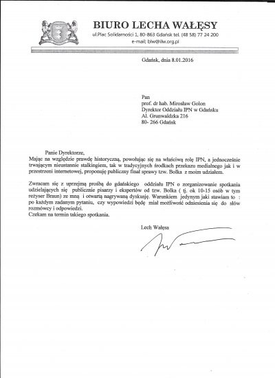 Były prezydent skierował list do dyrektora oddziału IPN w Gdańsku w sprawie spotkania, które ma dotyczyć sprawy tzw. Bolka. Miałyby w nim uczestniczyć osoby, które zarzucają Lechowi Wałęsie agenturę.