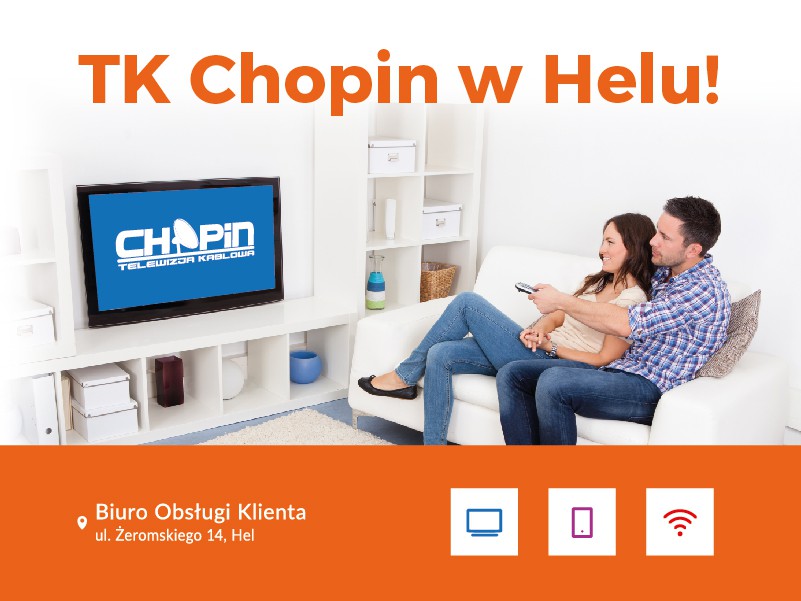 Telewizja Kablowa Chopin dotarła do Helu. Mieszkańcy mogą skorzystać z bogatej oferty kanałów telewizyjnych, szybkiego internetu czy taniego telefonu. W Helu otwarto także Biuro Obsługi Klienta, w którym można spytać o szczegóły i podpisać umowę.