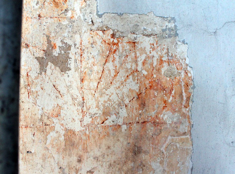 Wyryty na mokro rylcem w pobiale i wypełniony czerwienią żelazową rysunek odkryto na wysokości okna ściany południowej pierwszego przęsła świątyni, licząc od strony transeptu. Ma wymiary ok 25 x 35 cm. Nie wykluczone, że w pobliżu znajduje się dalsza sekwencja sklepienia