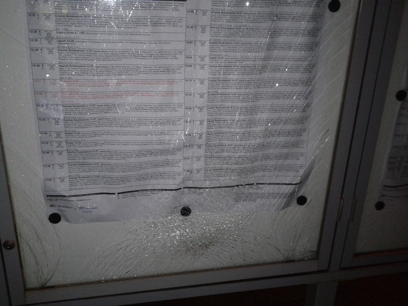 W czwartek (28.01) około godziny 1:00 w nocy strażnicy miejscy ścigali wandala. Na terenie PKP w Wejherowie doszło do zniszczenia trzech szyb w gablocie z rozkładem jazdy.
