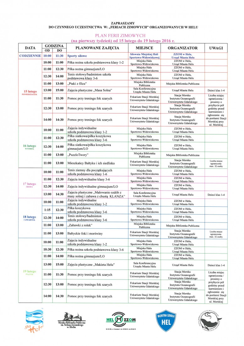 Dla wszystkich uczniów pozostających w ferie w Pucku Urząd Miasta przygotował bogatą ofertę mającą na celu zapewnienie ciekawego i zdrowego spędzenia wolnego czasu jak największej liczbie dzieci i młodzieży w wieku szkolnym.