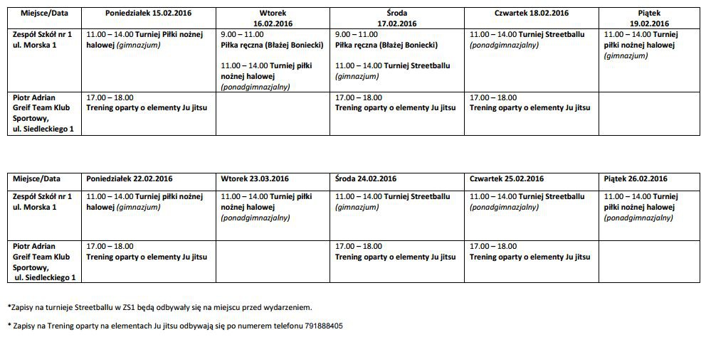 Treningi będą odbywały się od 15 do 20 lutego w UKS Galeon (ul. Morska 91) oraz Body Center (ul. Wielkopolska 250B).