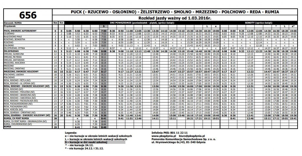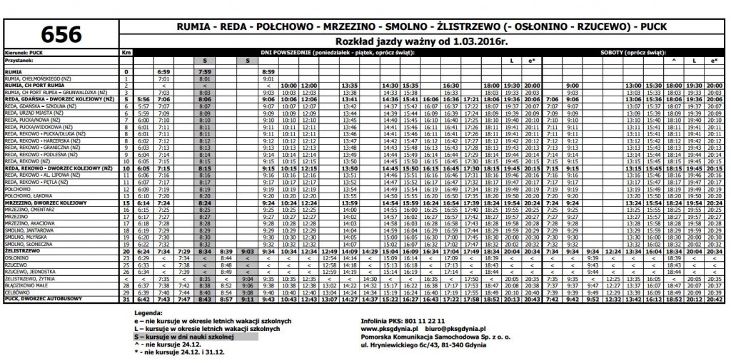 Od wtorku (1 marca) w dni powszednie i w soboty na drogach pojawi się więcej autobusów PKS Gdynia pokonujących dystans z Pucka do Rumi, natomiast zmniejszy się ilość kursów do Rzucewa i Osłonina.