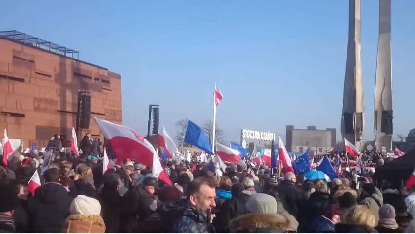 Gigantyczna flaga, przemówienie Danuty Wałęsy i tłumy ludzi - w niedzielę (28.02) w Gdańsku odbył się wiec poparcia dla Lecha Wałęsy. Na placu Solidarności zebrali się ci, którzy wspierają byłego prezydenta i nie wierzą, że jest agentem "Bolkiem".