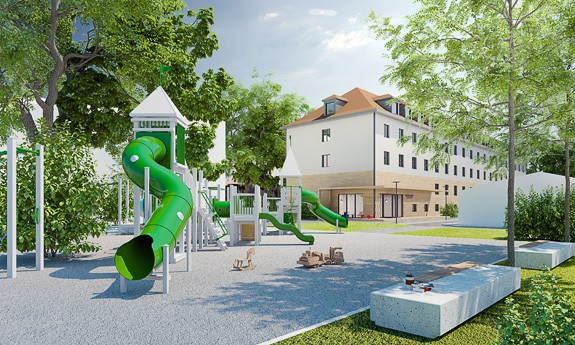 Parter akademika (ok. 850 m2) zostanie zaadaptowany na przedszkole. Placówka będzie wyposażona w osobne wejście i kilka sal zajęć. Do dyspozycji najmłodszych będzie także spory plac zabaw.