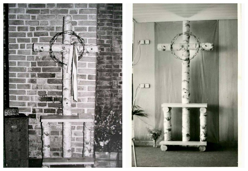 Po rozmowie z pracownikiem gospodarczym, który użyczył im narzędzi, internowani w Strzebielinku postanowili wykonać krzyż.