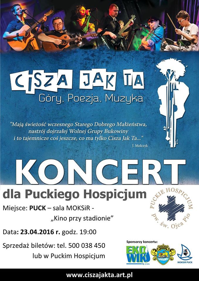 W Pucku tegoroczne Pola Nadziei zainauguruje charytatywny koncert zespołu „Cisza Jak Ta” 23 kwietnia (w sobotę) o godzinie 19.00 w Sali Kinowej przy stadionie.