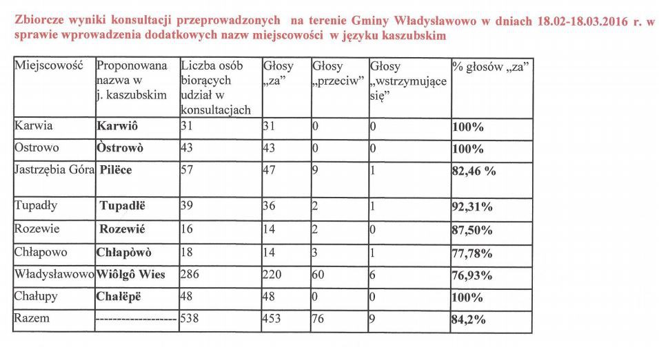 Przypomnijmy, że nazwa miejscowości w języku kaszubskim może być ustanowiona na wniosek Rady Gminy, jeżeli za jej ustaleniem, podczas konsultacji społecznych, opowie się ponad połowa mieszkańców biorących udział w głosowaniu.