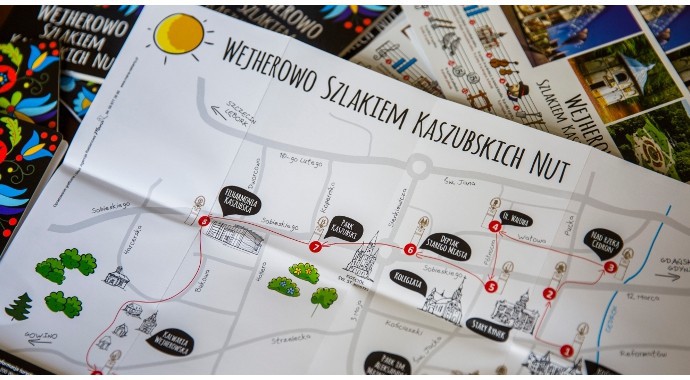 Wędrując za rozmieszczonymi w mieście 14. elementami tradycyjnej pieśni kaszubskiej o charakterze wyliczanki, można zobaczyć m.in. Kościół św. Anny, Rynek, Park, Filharmonię Kaszubską czy Kalwarię Wejherowską.