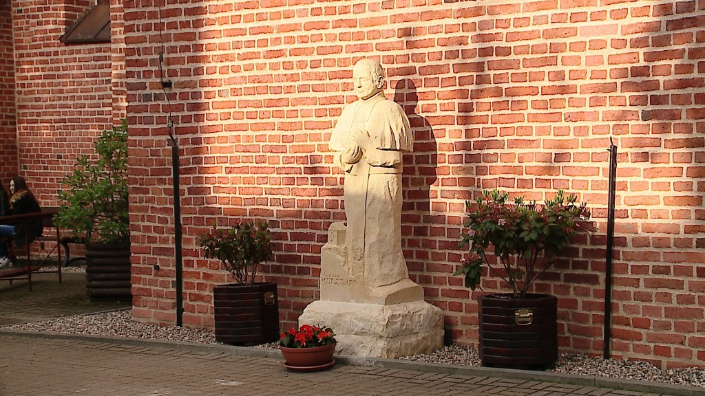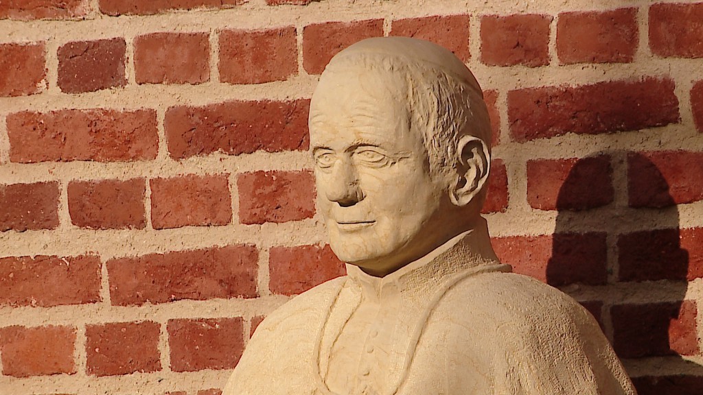 Oprócz tego przy postaci papieża znajduje się wyrzeźbiona mała kapliczka, która symbolizuje Kalwarię Wejherowską.