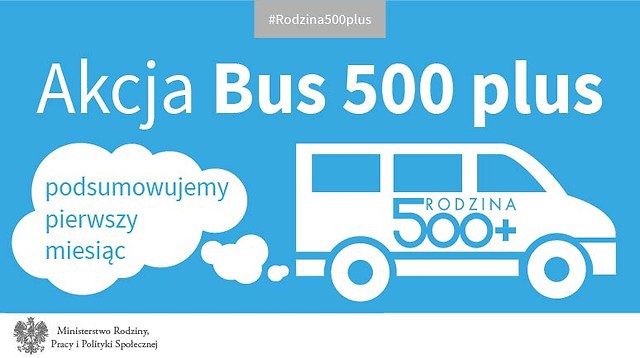 Kampania "bus 500 plus" rozpoczęła się w dniu startu programu czyli 1 kwietnia i potrwa do końca czerwca. W tym czasie pracownicy Urzędów Wojewódzkich odwiedzą każdy region w Polsce specjalnie oznakowanymi busami.