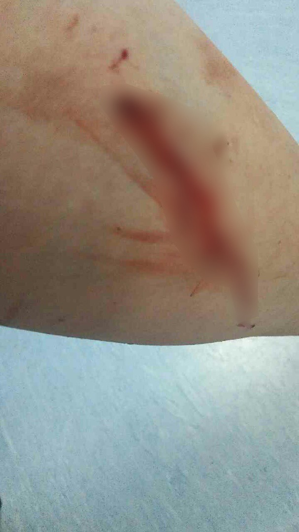 Kobieta stara się przestrzec innych mieszkańców przed agresywnym psem. Opisuje go jako mieszańca przypominającego owczarka niemieckiego w rudo-czarne łaty. Pies, zaraz po ugryzieniu, uciekł z posesji, jednak wciąż może się wałęsać po okolicznych miejscowościach.