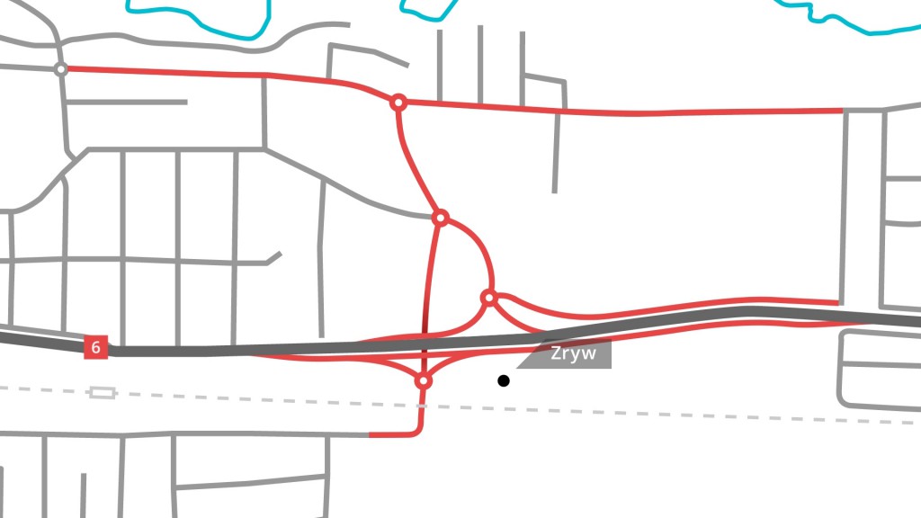 Ulica Patoka jest obecnie całkowicie zamknięta dla ruchu, a cała obsługa budowy, łącznie z ciężarówkami, wjeżdża na teren objęty pracami od strony krajowej szóstki.